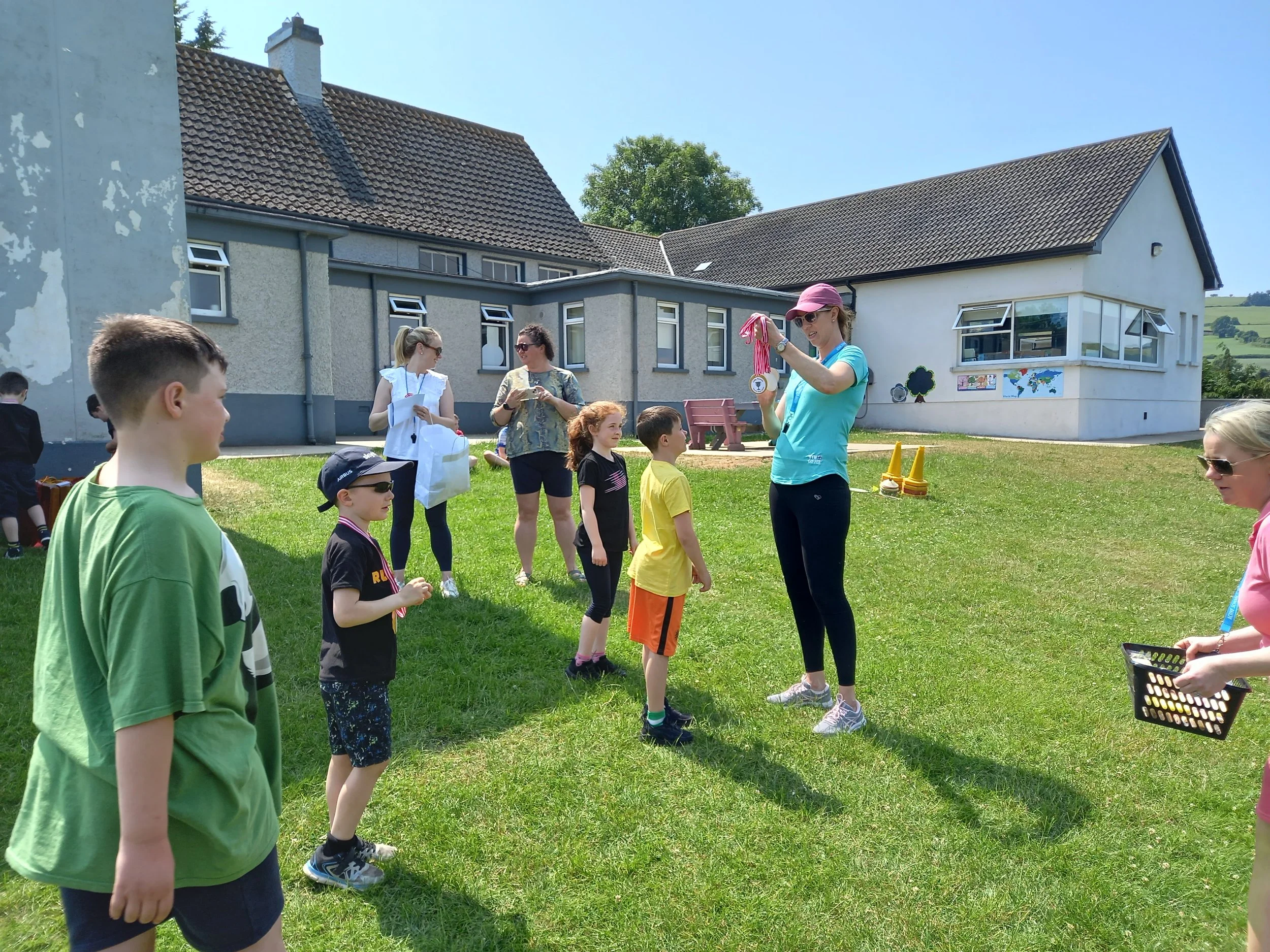 We had our medal presentation at the end of the day and each child was presented with their own personalised medal (Thank you to Emily Flannery for these!) We had lots of treats of popcorn and goody bags and some lovely refreshing cold fruit to cool everyone down throughout the day (Thank you to Cleo Griffin for manning the refreshments for us) Our 6th class were presented with their farewell graduation gifts from the school which composed off a personalized hoody & a class photo with a treat. They went on to have their 6th class outing that evening in Kidzone.